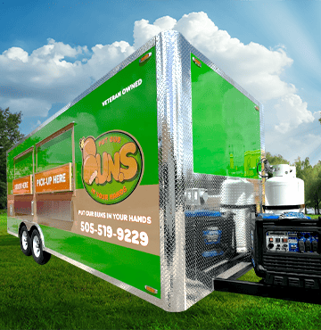 Customize to your needs including windows, doors, cooking & cooling equipment, TV, menu boards, awning, RGB lights, & much more. Powered by generator, or battery system.