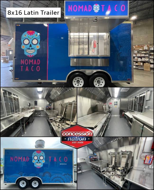 8×16 concession trailers for sale. Concession Nation can custom build your food trailer, as you envision it. We will build it according to your local health department codes, with quality and craftsmanship. We take pride in every build and make sure each is unique and stunning.