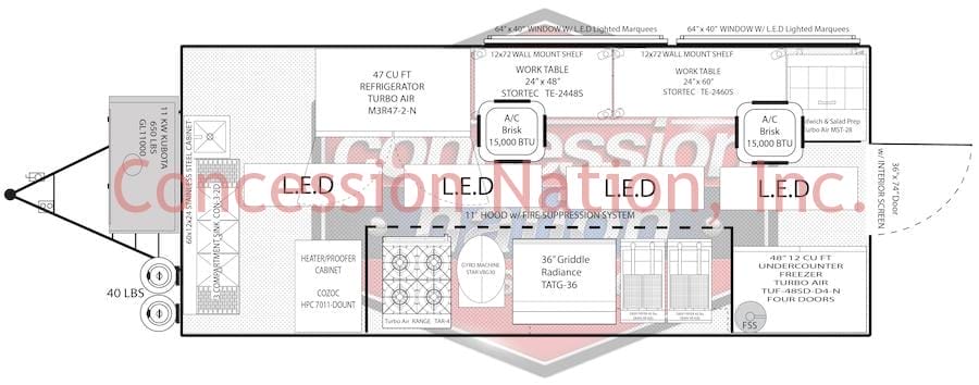 If you’re a great cook, ready to own your concession stand, well look no further. Concession Nation is a one stop shop that has it all to build the concession trailer of your dreams! We will build it to your satisfaction and exceed your expectations. There are key factors to keep in mind while deciding on the interior layout. What is your menu going to be? This will determine what cooking and cooling equipment you will need for your concession stand. Restaurants that have a bigger menu know what sells, so they already have an idea on what to serve in their vending trailer. If you’re a startup business, then you will have to think about a menu that is not too extensive and will help your line move faster. Customers want fast, fresh, filling, and delicious food.