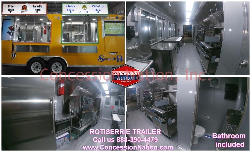 Well, this is 8×20 trailer fully loaded with a top of the line Rotisol is an upscale build for discerning chefs who know the value of Rotisol. It also conveniently includes a bathroom for the staff running the kitchen.