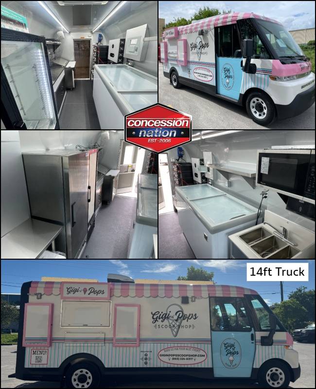 This 14′ Food Truck For Sale was built for Gigi N Pops, in 2025. This captivating ice cream is fully loaded and a golden goose indeed. This truck is completely ELECTRIC and is powered by both solar & battery.